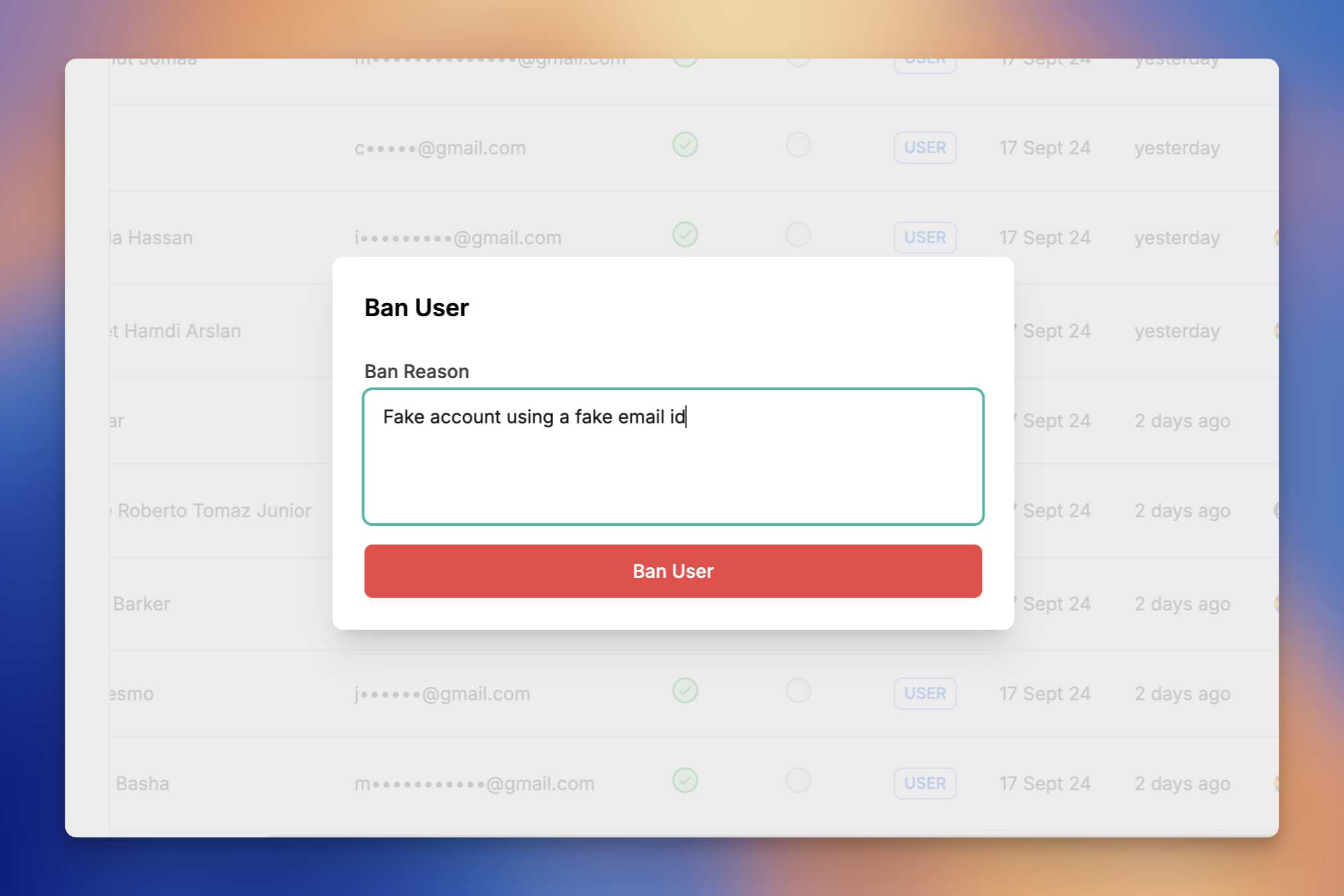 - Filter Verified, unverified, banned users.